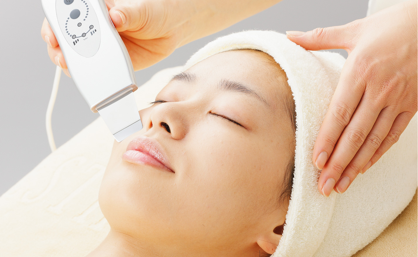プローブをスクライブ(ソニックの振動を利用)させることにより、古い角質や汚れなどを取り除きます。